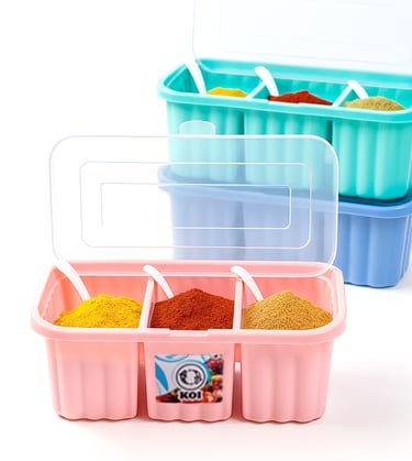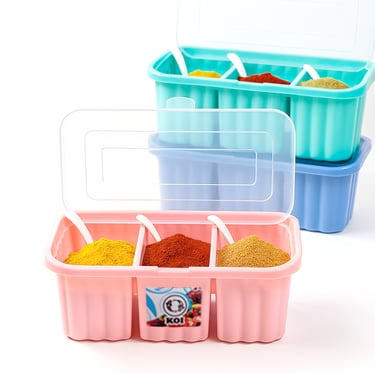 Lengkapi dapur Anda dengan tempat bumbu serbaguna berdesain minimalis dan warna pastel yang elegan! Terdiri dari 3 sekat terpisah lengkap dengan sendok takar dan tutup transparan, tempat bumbu ini sangat praktis untuk menyimpan berbagai jenis bumbu seperti garam, lada, kunyit, dan lainnya.